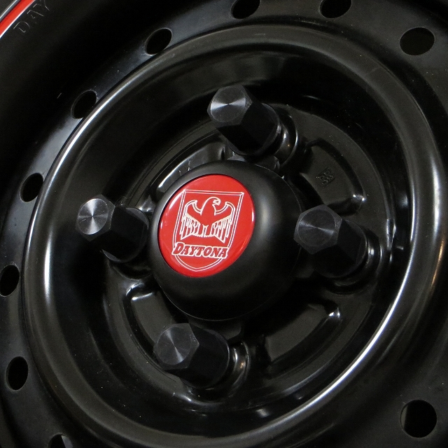 【適合】 ホンダ以外の小型車、リッタカー全般。 【セット内容】 デイトナブラックキャップx4個、オーナメント黒・赤・銀、各4枚、スチールブラックナット19HEXタイプx16個 (頭の形状が写真と異なる場合があります。) 、DAYTONA ミニステッカーx4枚