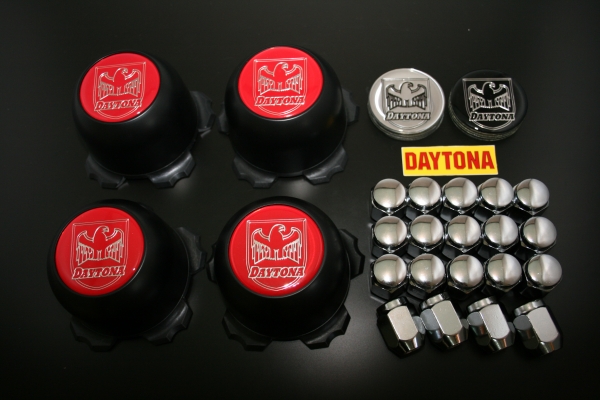 【適合】 ホンダ車専用。P.C.D = 5H-114.3用。 【セット内容】 デイトナブラックキャップx4個、オーナメント黒・赤・銀、各4枚、スチールメッキナット21 HEXタイプx20個 (頭の形状が写真と異なる場合があります。) 、DAYTONA ミニステッカーx4枚