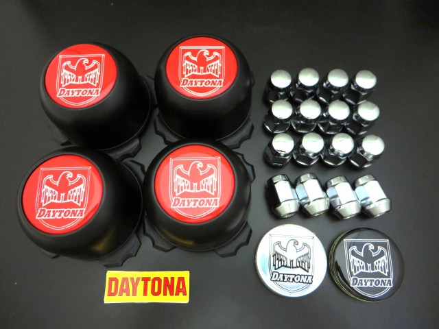 【適合】 ニッサンNV200 ・ミツビシデリカD3等、P.C.D = 4H-114.3用。 【セット内容】 デイトナブラックキャップx4個、オーナメント黒・赤・銀、各4枚、スチールメッキナット21 HEXタイプx16個 (頭の形状が写真と異なる場合があります。) 、DAYTONA ミニステッカーx4枚
